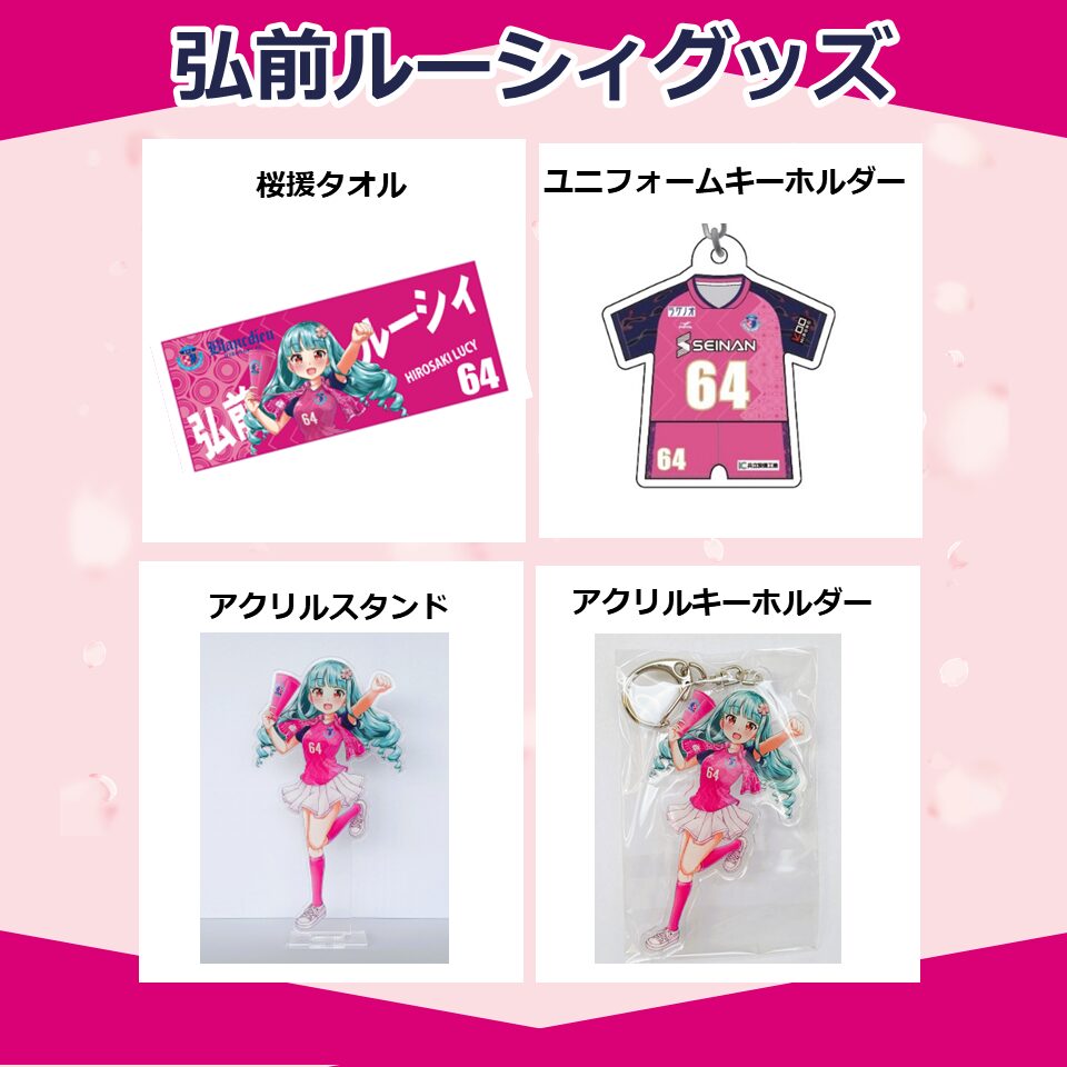アクリルスタンド ¥2,000/アクリルキーホルダー ¥1,000/弘前ルーシィ桜援タオル ¥3,000/弘前ルーシィユニフォームキーホルダー ¥1,000/弘前ルーシィユニフォーム(受注販売)¥18,000+送料