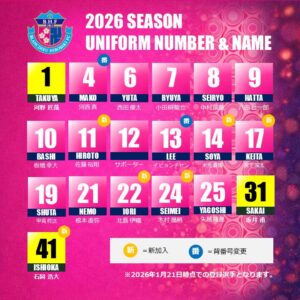 2026シーズン選手背番号・ネームは下記をご覧ください。