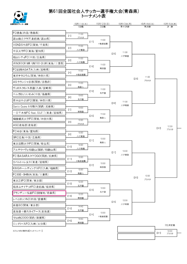 このたび、ブランデュー弘前FCでは、10月11日(土)から青森県で開催される第61回全国社会人サッカー選手権大会の組み合わせが決定いたしましたので、お知らせいたします。